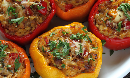 Grundrezept für Gefüllte Paprikaschoten mit Hackfleisch (einfach & günstig mit wenigen Zutaten)